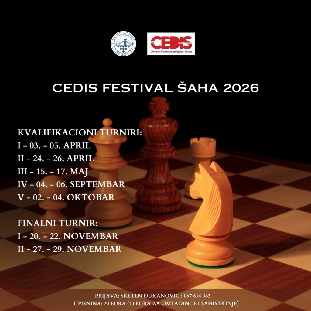 KLUPSKE AKTUELNOSTICEDIS Festival šaha 2026Šahovski klub „Budućnost CEDIS“ nastavlja sa organizacijom šahovskih turnira kroz CEDIS Festival šaha 2026,…17/03/2026Čitaj više